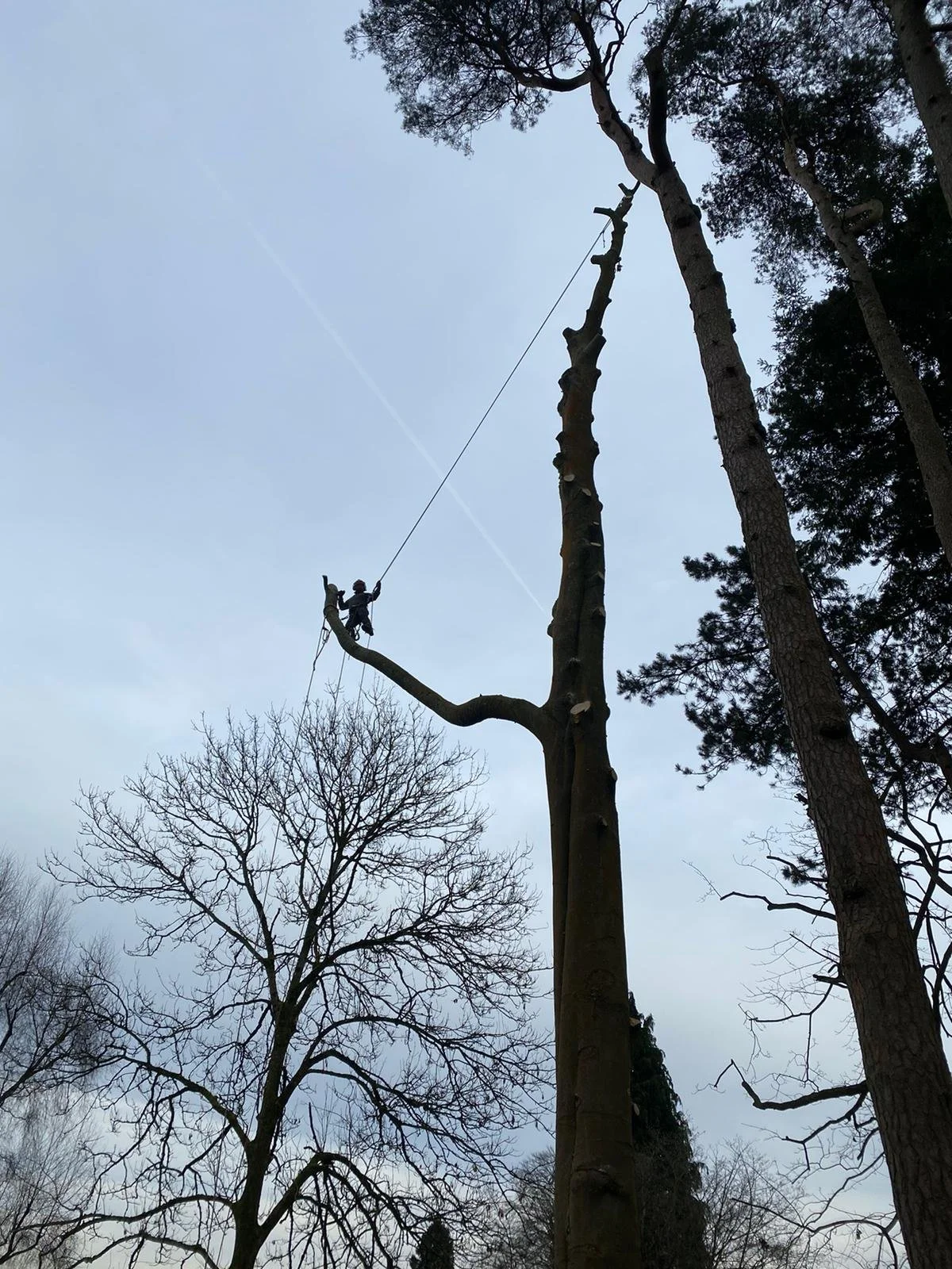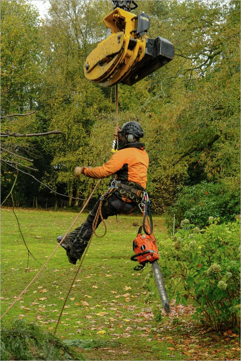We specialise in the careful removal of trees in any location. This may range from being able to safely fell and process a tree from the base or employing specialist skills to climb and dismantle a tree in sections utilising modern rigging techniques to carefully and systematically lower a tree within its own space or we may utilise specialist equipment such as cranes to assist with a removal.